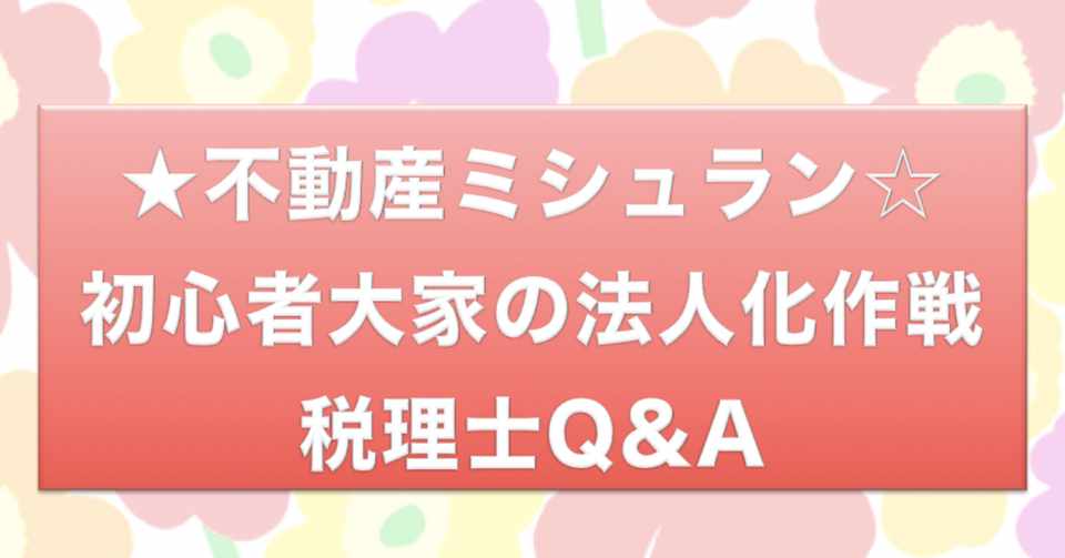 不動産ミシュラン その22 初心者大家の法人化作戦 税理士q a 不動産ミシュラン 現役サラリーマン大家が不動産投資で目指す 副業 月収50万への途 Note