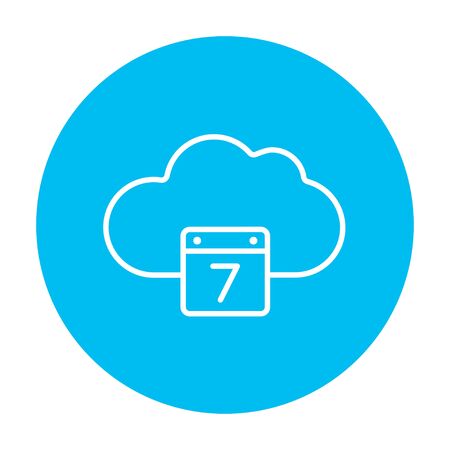 Web モバイル インフォ グラフィックのクラウド カレンダー ライン アイコン 白い背景に分離された角の丸い青いグラデーションの四角形に白のアイコンをベクトルします のイラスト素材 ベクタ Image