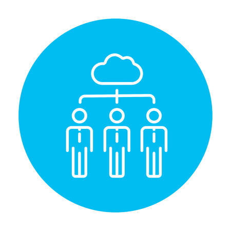 3 人のビジネスマンは ウェブ モバイル インフォ グラフィックのクラウド ライン アイコンとリンクされています ベクトル ライト青アイコン青の背景に分離されました のイラスト素材 ベクタ Image