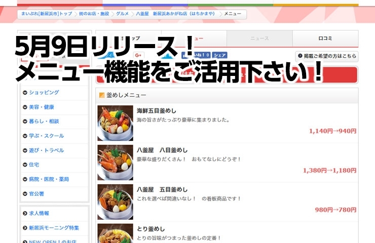5月8日リリース メニュー機能をご活用下さい 掲載店必見 まいぷれ活用レポート まいぷれ 新居浜市