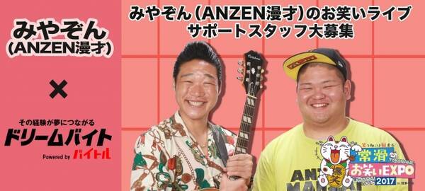 100組以上のお笑い芸人が集結する史上最大級のお笑いフェス 常滑お笑いexpo17 で みやぞん Anzen漫才 のお笑い ライブをサポートするアルバイトを2案件同時に募集開始 17年8月25日 エキサイトニュース